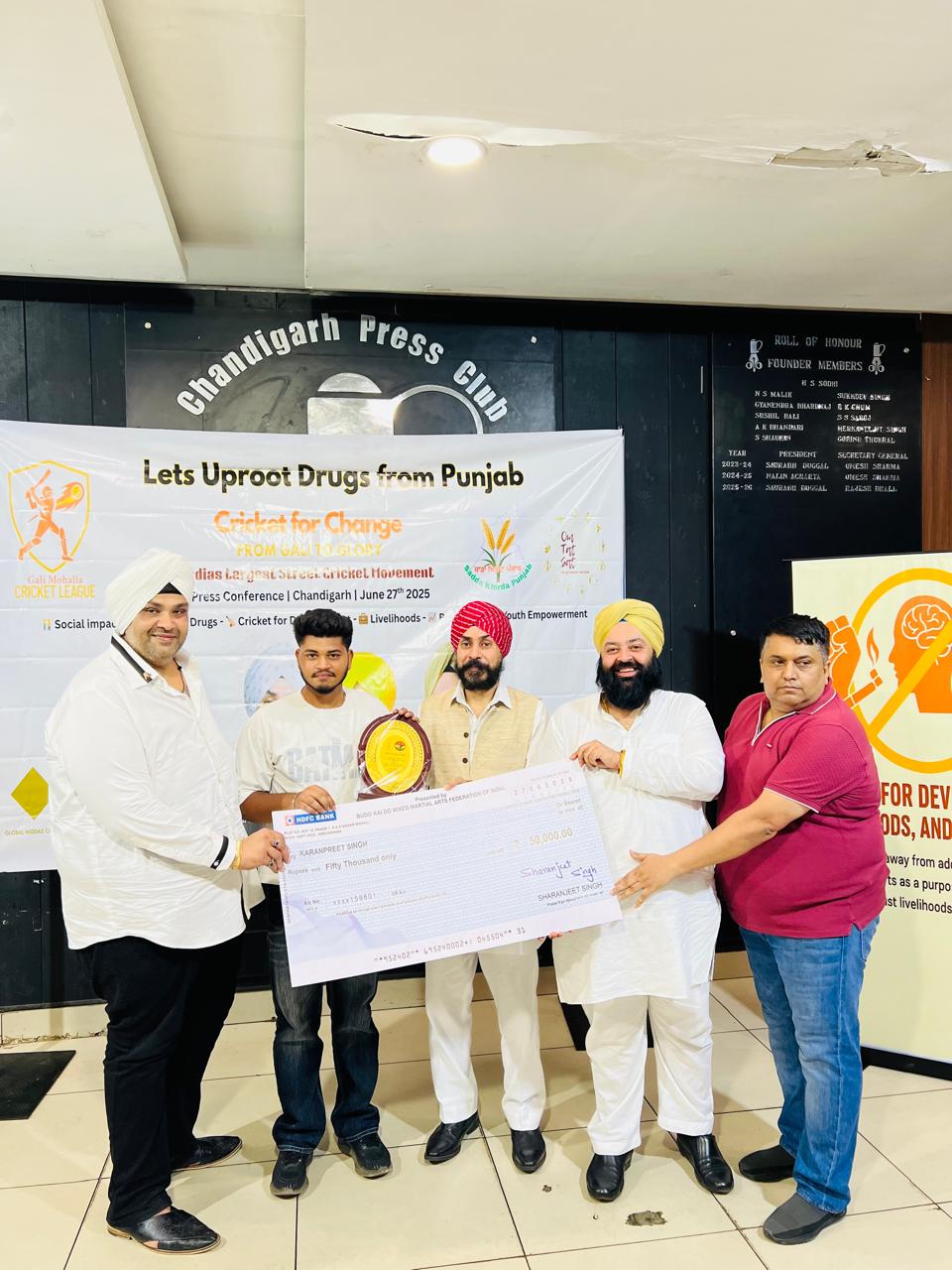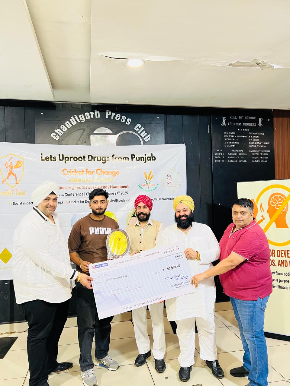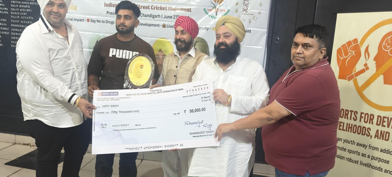 Sat Karmic Mission & Gali Mohalla Cricket League (GMCL) Honour to National Player of Budo kai do Mixed Martial Arts Federation of India at Press Club Sector 27, Chandigarh on 27th June 2025 Participating in 4th Indo-Nepal karate Championship Nagaland 2025
